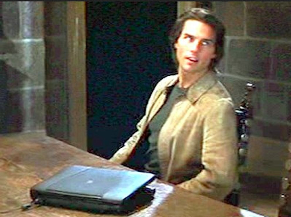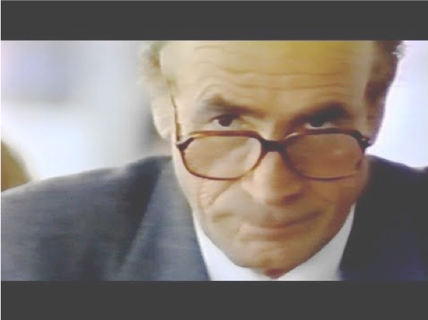 and the commercial zooms into show the salesman’s badge (he’s from IBM!). The commercial ends with a Macintosh logo.
