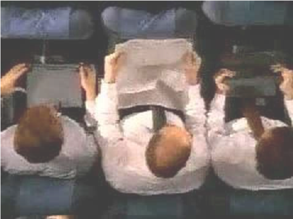 This ad showed two businessmen using PowerBooks in an airplane at 30,000 feet.