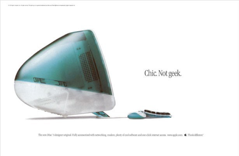 Up until this point, colored computers were incredibly expensive. This was the first affordable Mac with a color display. This ad embodies the principle of keep it simple.