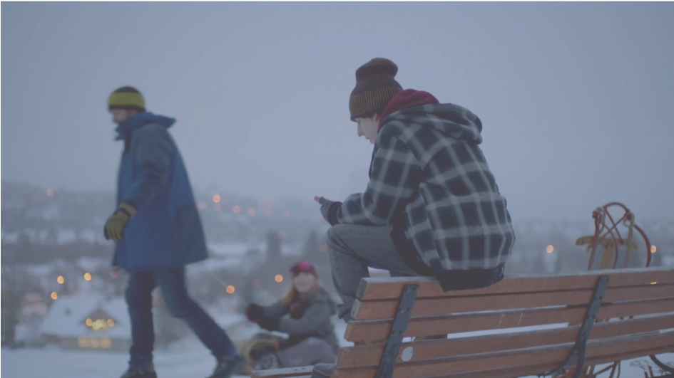 family Christmas gathering going on all around him. At the end, he shows his family what he’s been preoccupied doing, creating a film with his iPhone to celebrate their get together.