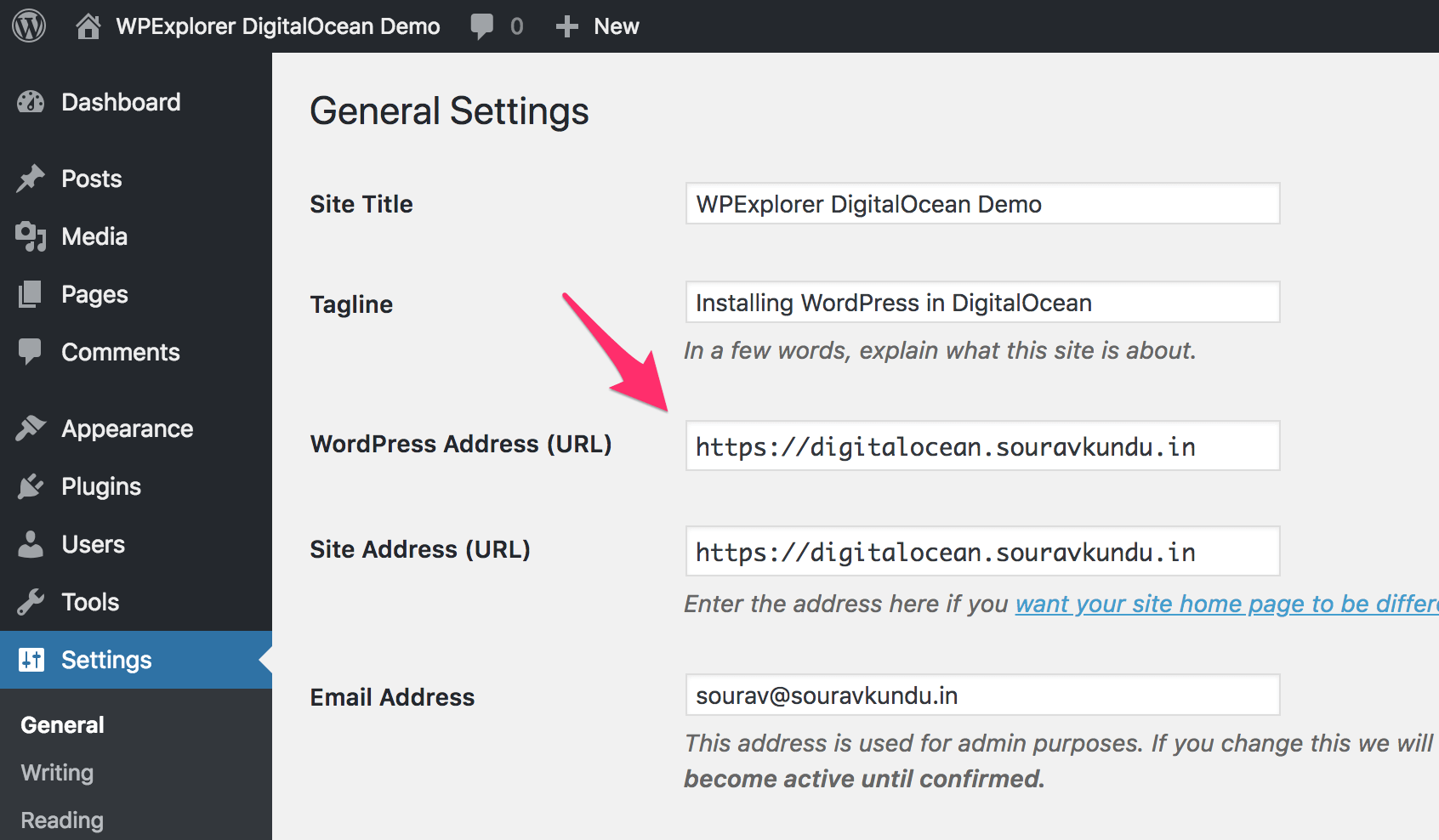 - Configuring WordPress installation on DigitalOcean