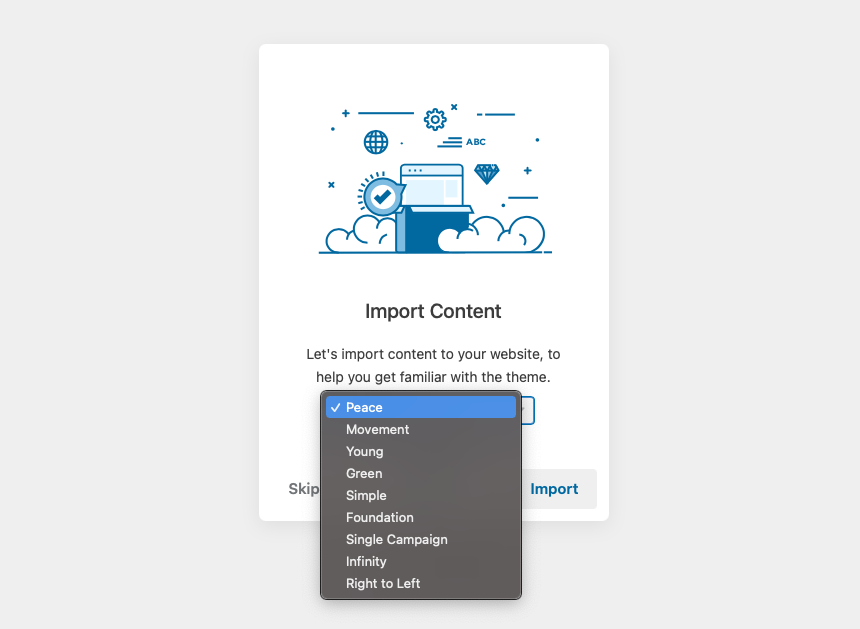 Once the Campoal theme is activated, you will be redirected to the setup Wizard page, where you can install the basic plugins and import the demo.